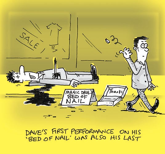 Bed of Nail - (Yellow) - Dave's first and last street performance on his home-made bed of nail.